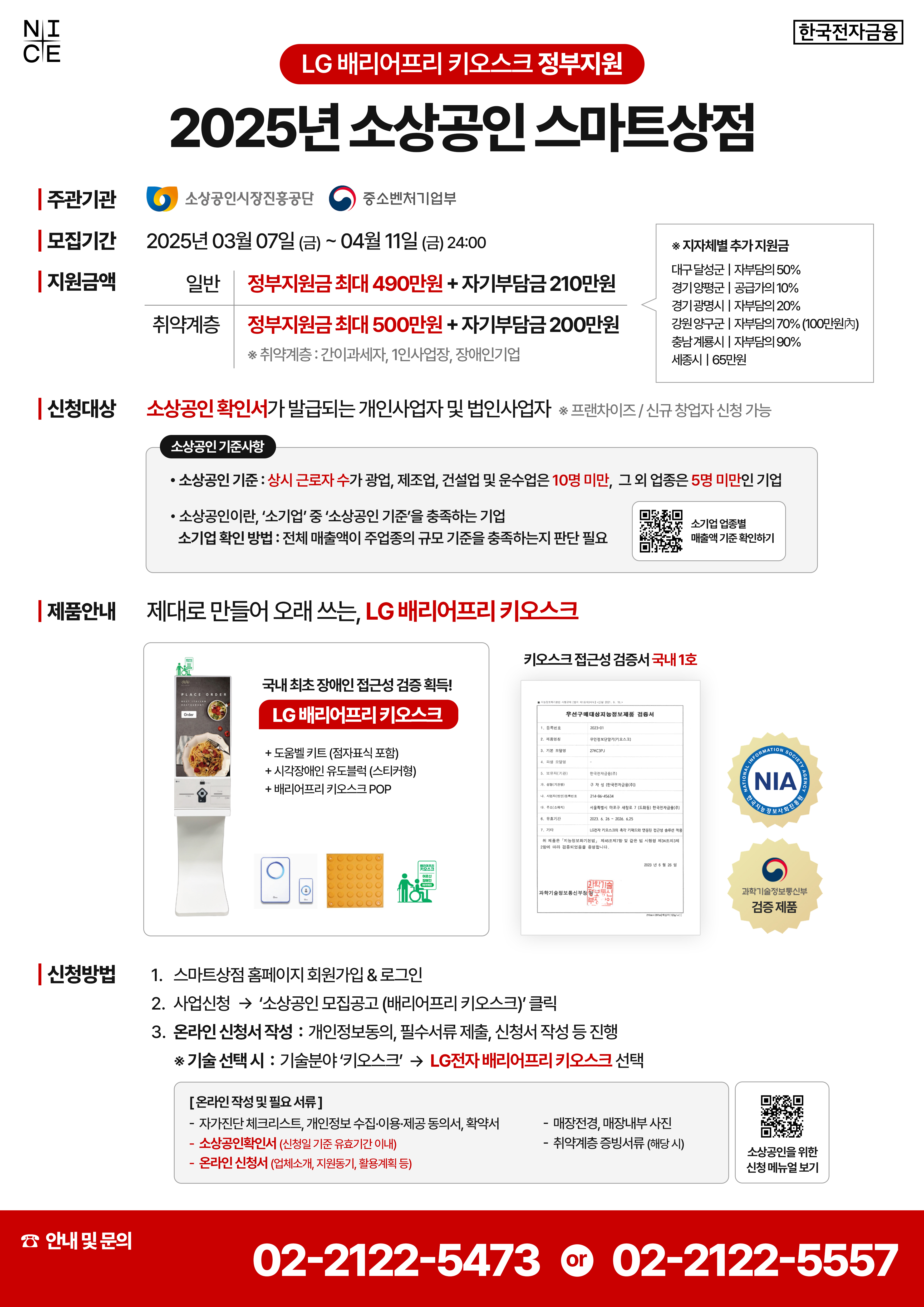 올해부터는 키오스크 중 배리어프리 정부 검증 획득 제품만 지원하고 있으며,