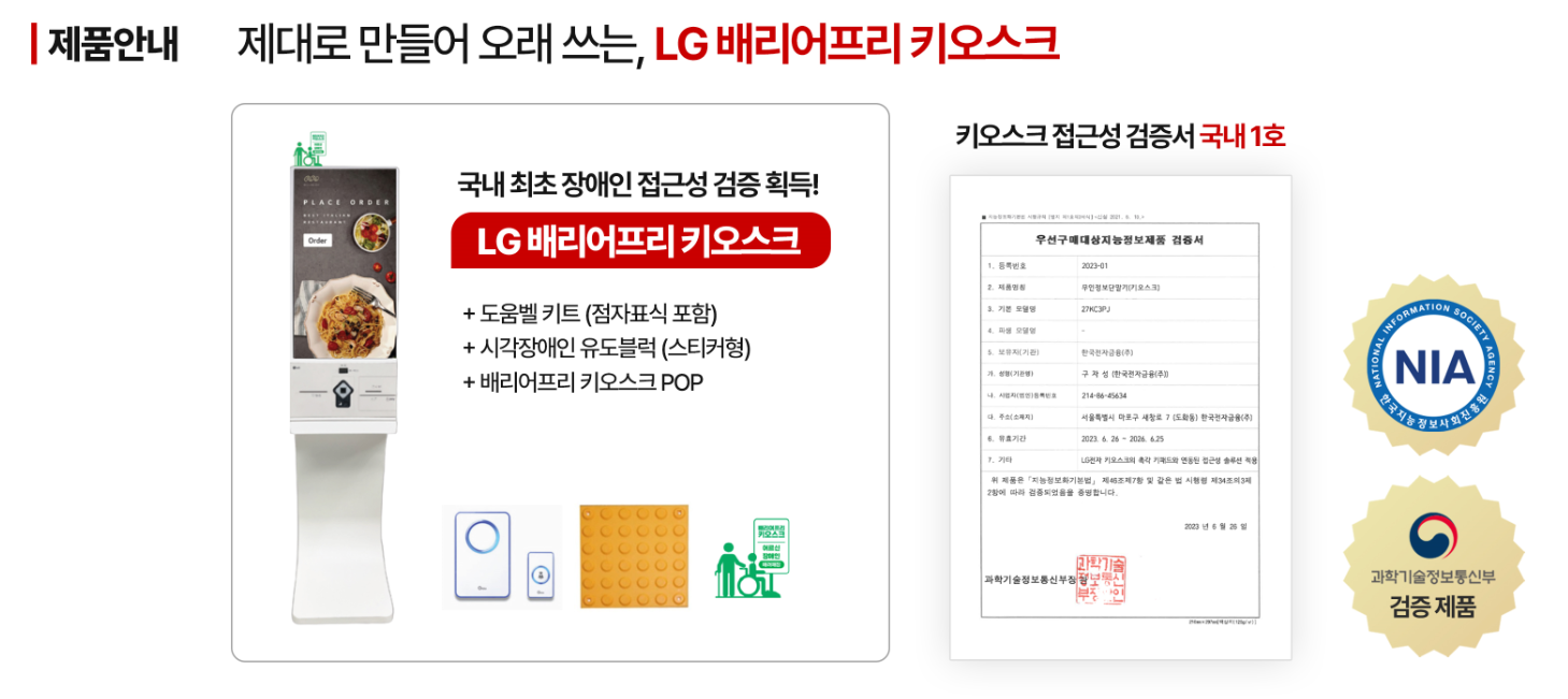 LG 배리어프리 키오스크는 국가의 공식 검증을 받은 키오스크로,