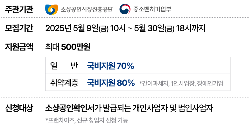 공급가의 70~80%, 최대 500만원까지 지원하고 있습니다!