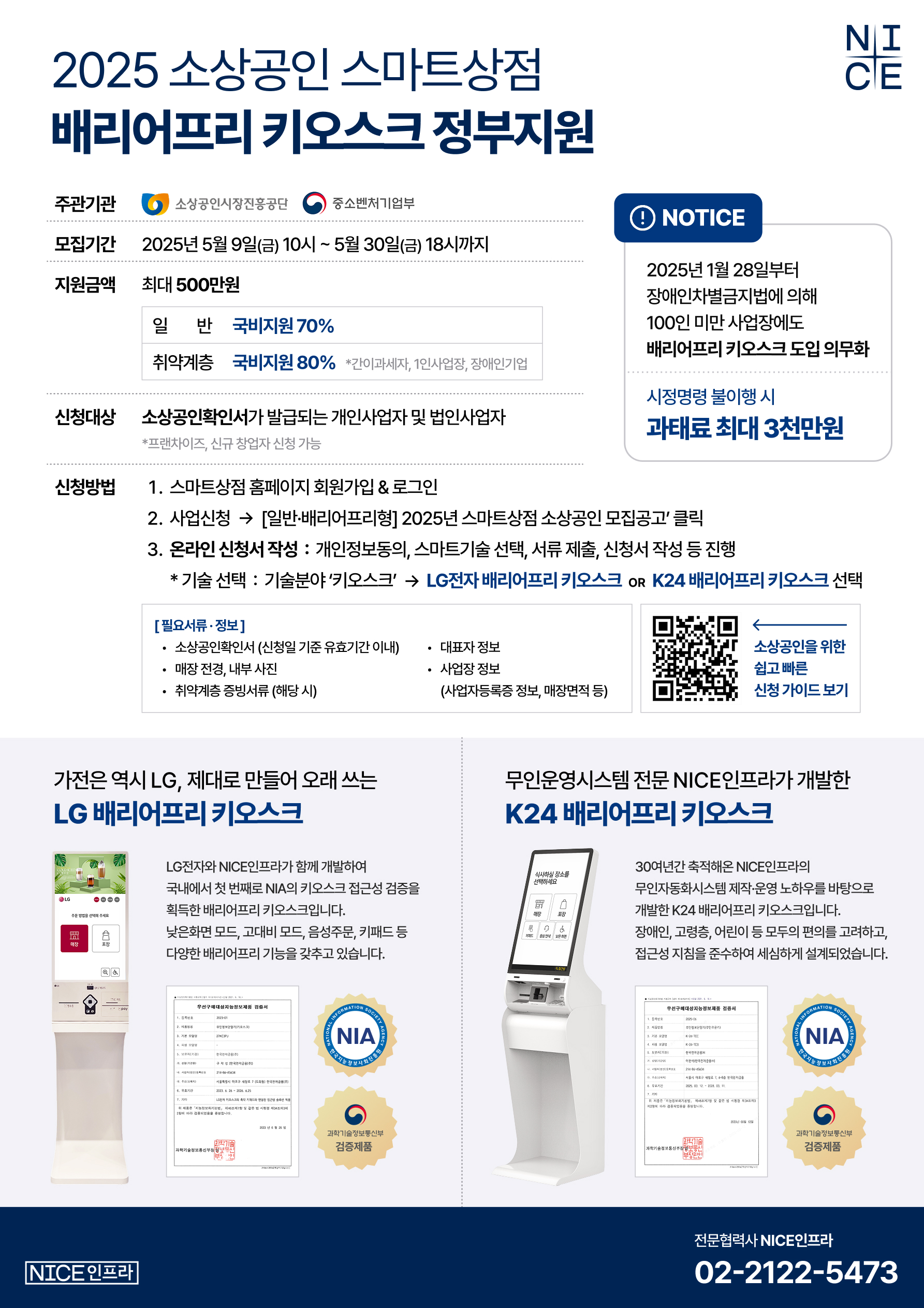 올해부터는 키오스크 중 배리어프리 NIA 검증서 획득 제품만 지원하고 있으며,